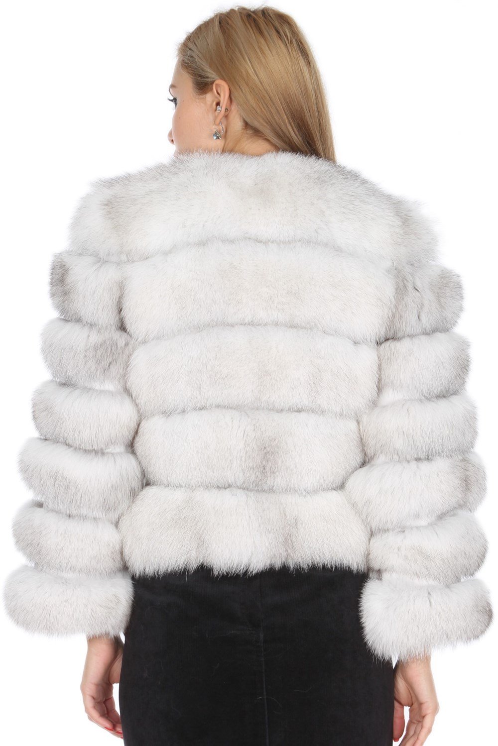 - Naturalne futro lisa – białe z przyciemnionymi końcówkami w odcieniach szarości/grafitu