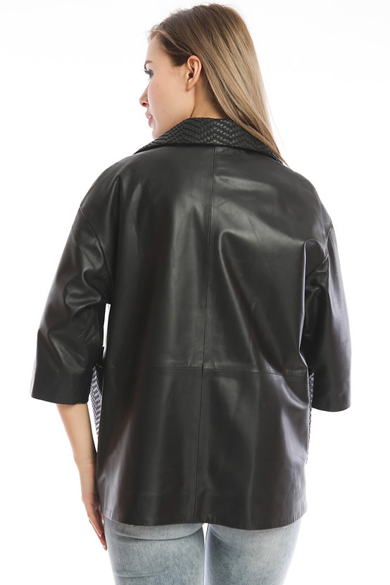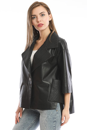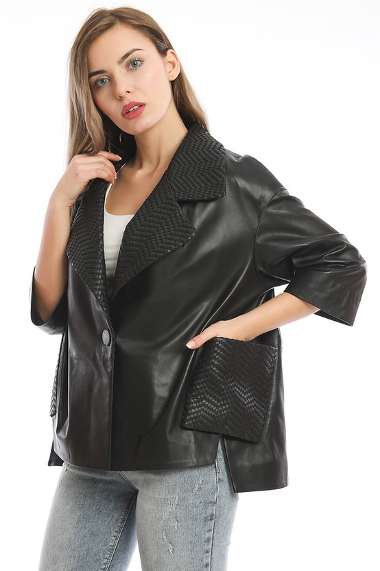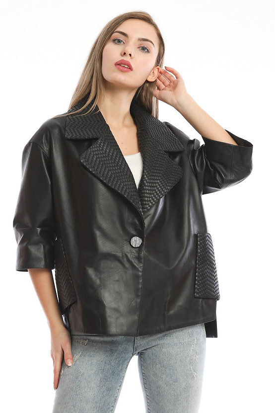 Naxie – marynarka z siateczkowymi lamówkami ze skóry, kieszeniami i pojedynczym guzikiem
