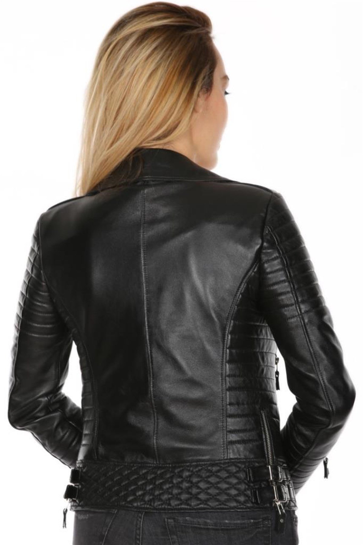 Drapieżna, damska kurtka „Fury Rider” wykonana z miękkiej cielęcej skóry, która łączy elegancję z rockowym stylem. Pikowania na dole kurtki po bokach oraz na rękawach podkreślają jej dynamiczny charakter. Rękawy wyposażone w odpinane zamki dodające funkcjonalności i niebanalnego stylu. Pikowane ramiona wzmacniają militarny, mocno motocyklowy look. Podwójny zamek błyskawiczny na froncie pozwala na różnorodne stylizacje, a ozdobne zamki po bokach wraz z dwoma dekoracyjnymi paskami u dołu nadają kurtce surowej, odważnej estetyki. Idealna dla kobiet, które chcą podkreślić swój drapieżny charakter i niezależność.