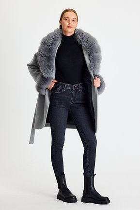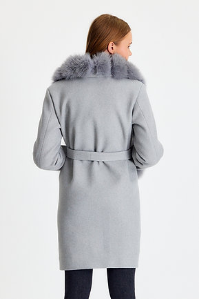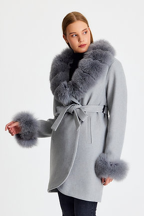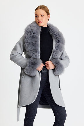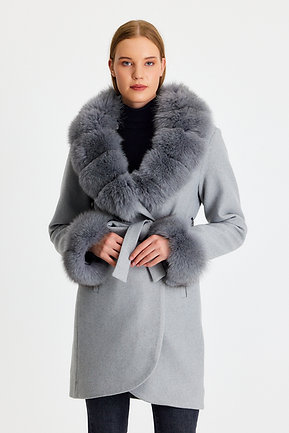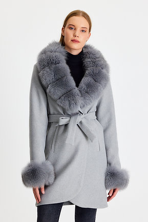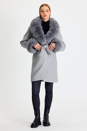 Frost – wełniany płaszcz w kolorze szarym z futrzanymi dodatkami