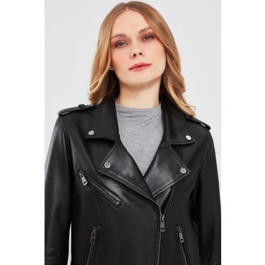 Luna – czarna damska kurtka skórzana z jagnięcej skóry z asymetrycznym zamkiem
