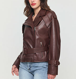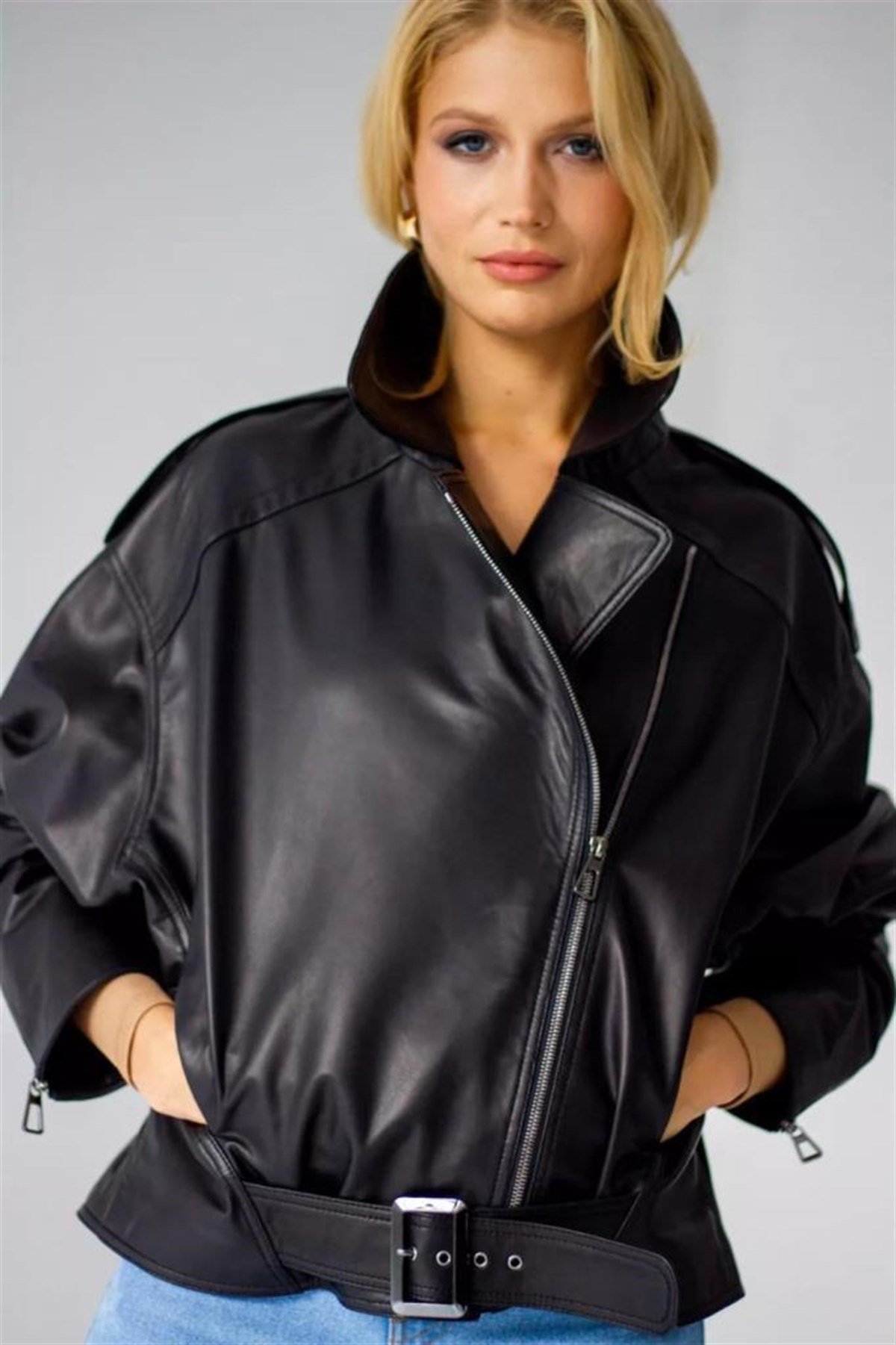 Damska kurtka skórzana z paskiem i asymetrycznym zamkiem – model Lunari
